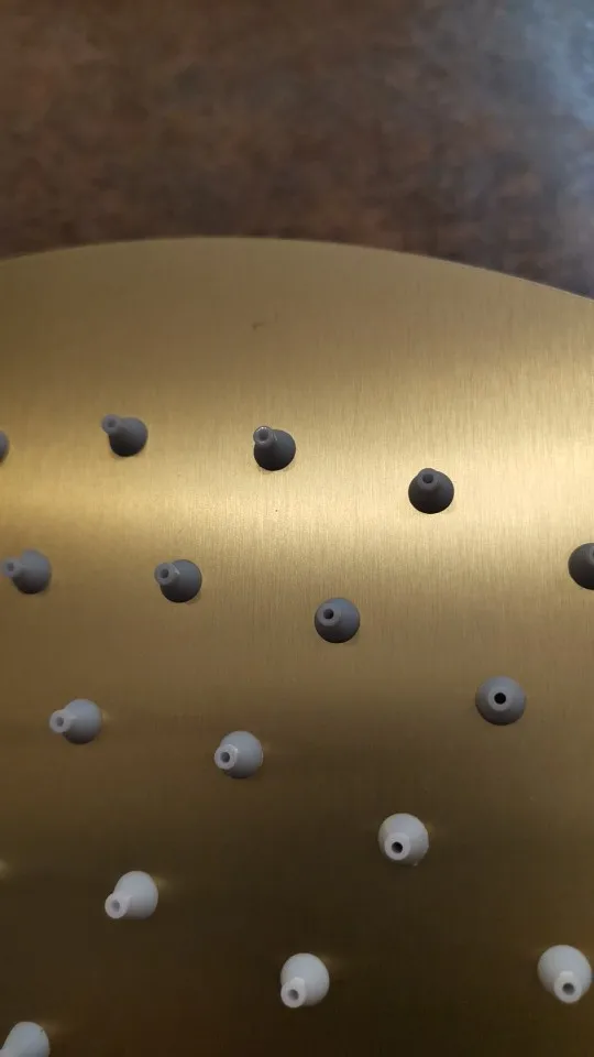 Buses en Silicone : Le pommeau supérieur et la douchette disposent de buses souples permettant d'éliminer le calcaire par simple pression du doigt.
