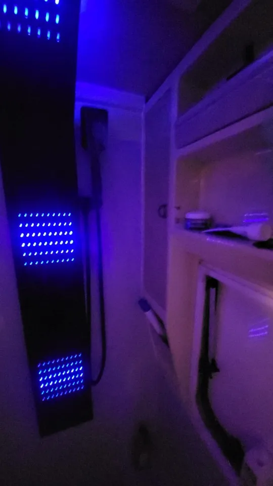 Ambiance LED : Éclairage LED intégré au pommeau supérieur pour une ambiance apaisante de chromathérapie.