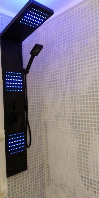 Corps de colonne : Panneau principal avec écran LCD, buses de massage et mitigeur intégrés.