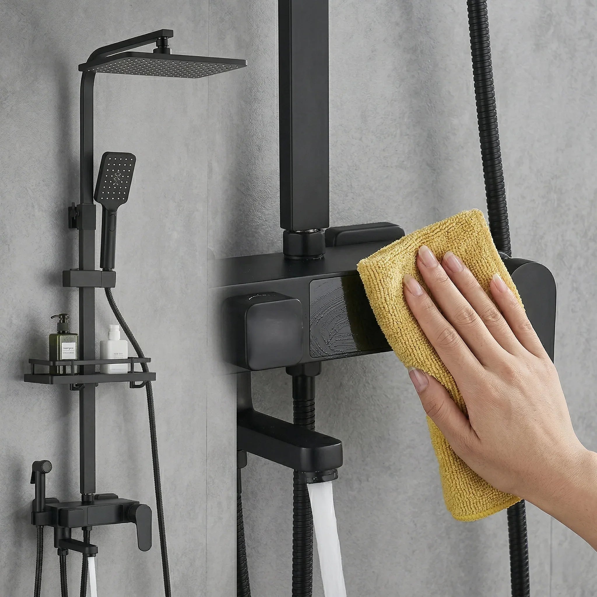 Système Multifonction : Permet de basculer facilement entre le jet pluie du plafonnier, la douchette à main, le bec de baignoire et le pistolet pulvérisateur haute pression.