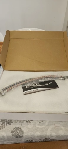 Conduites d'eau : Une paire de flexibles tressés pour l'alimentation en eau chaude et froide.