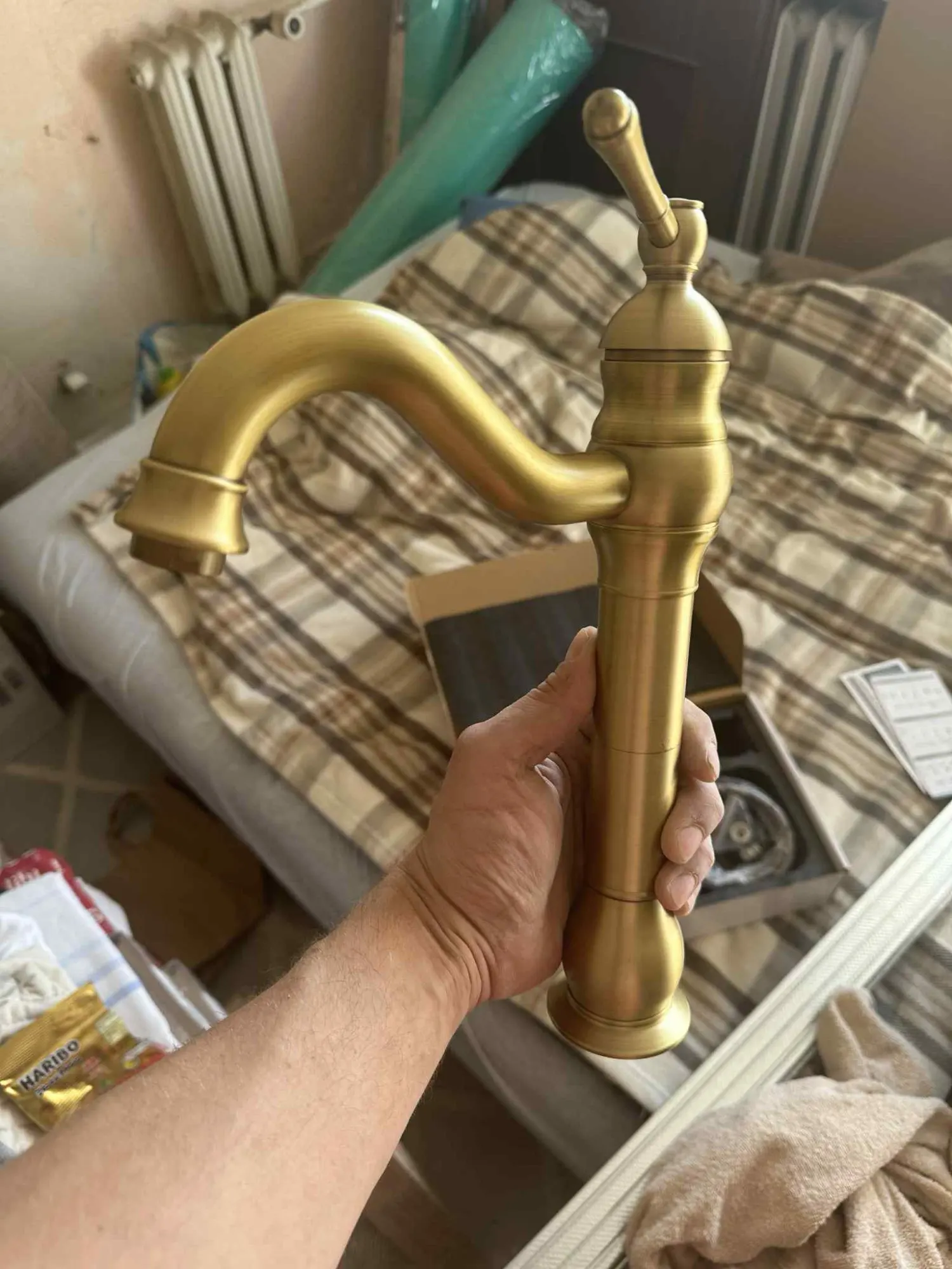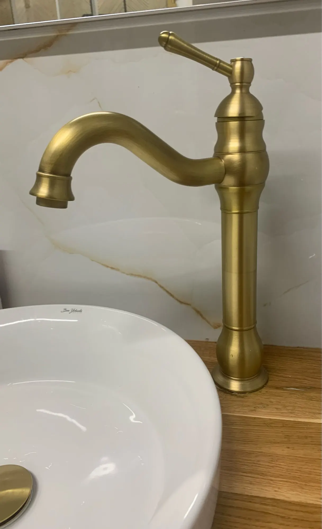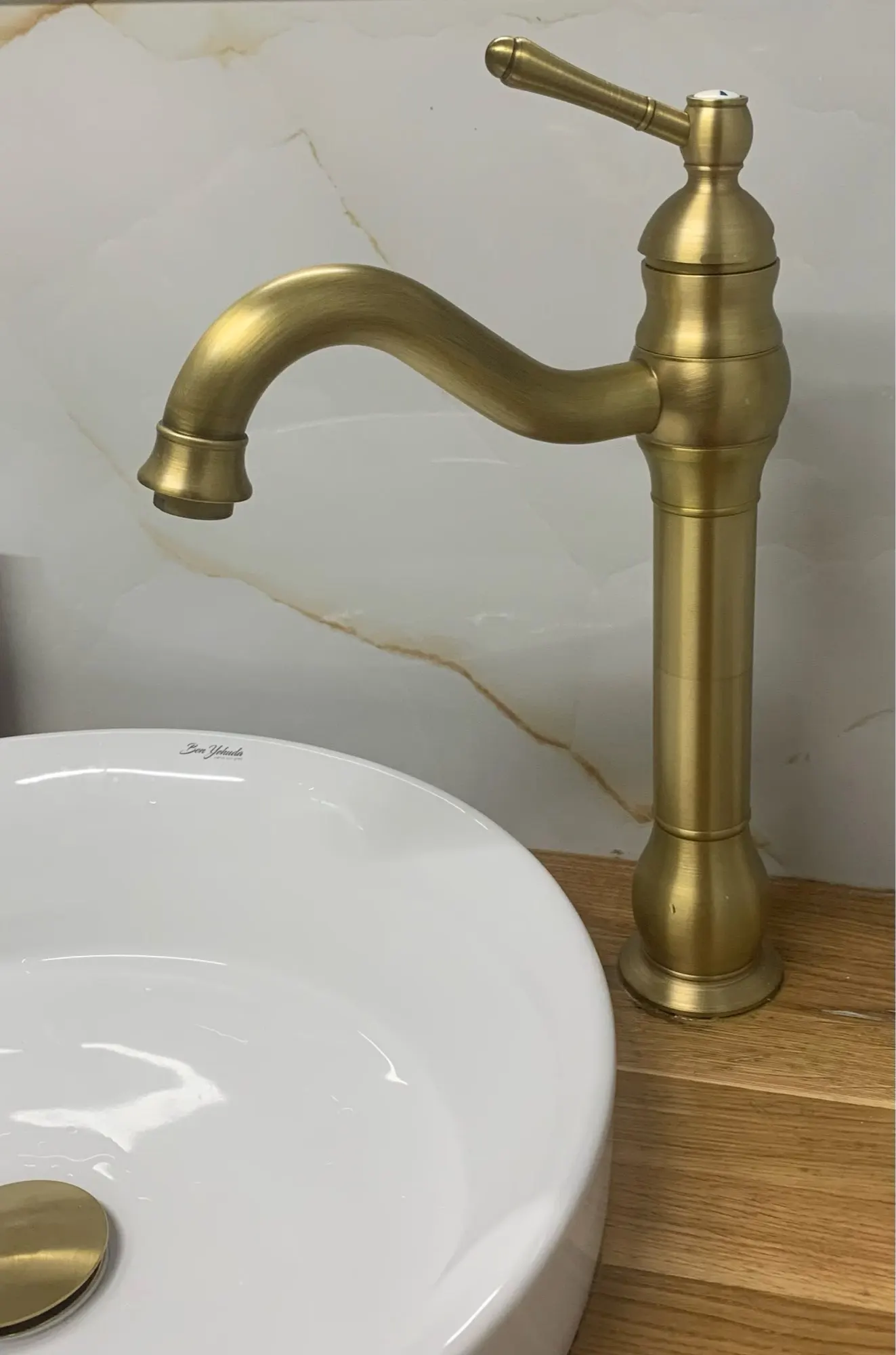 Ce robinet se distingue par son esthétique vintage inspirée des demeures classiques, soulignée par une silhouette élancée et des courbes galbées. Sa structure présente un corps principal vertical surmonté d'un bec courbé en col de cygne, le tout habillé d'une finition en laiton antique aux reflets chauds et patinés. La poignée de commande, travaillée avec une finesse ornementale, complète ce look rétro tout en offrant une prise en main ergonomique et fluide.